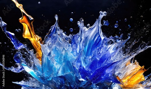 © G-IMAGES, Fototapeta premium Blue Water splashes on black - abstract freeze frame, Generative AI.