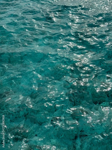 © yahya, Obraz premium blue water surface texture with sun reflection