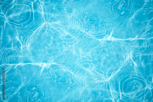 © Water 💧 Shining 📸, Obraz premium Blue water with ripples on the surface. Defocus blurred transparent blue colored clear calm water surface texture with splashes and bubbles. Water waves with shining pattern texture background.