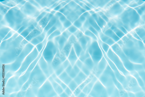 © Water 💧 Shining 📸, Obraz premium Blue water with ripples on the surface. Defocus blurred transparent blue colored clear calm water surface texture with splashes and bubbles. Water waves with shining pattern texture background.