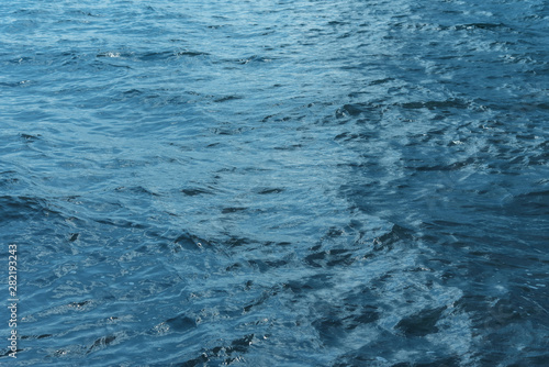 Obraz premium Blue water with waves and sun reflections background