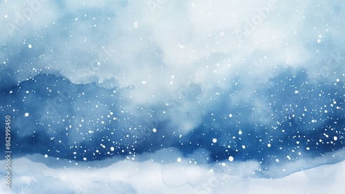 © Aku Creative, Fototapeta premium Blue watercolour painting with snowflakes