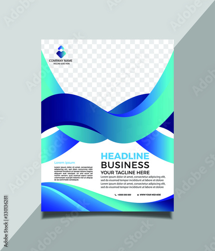 © Shahanaz, Fototapeta premium Blue wave flyer design vector