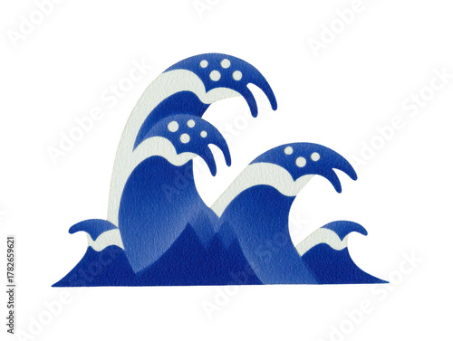 © Prichachai, Naklejka premium Blue wave illustration ocean water sea wave stylized abstract dynamic energetic white crest aquatic marine isolated transparent background digital art modern decorative peaceful nature splash