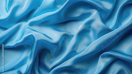 Fototapeta premium Blue wave style background with polyester fabric in copy space