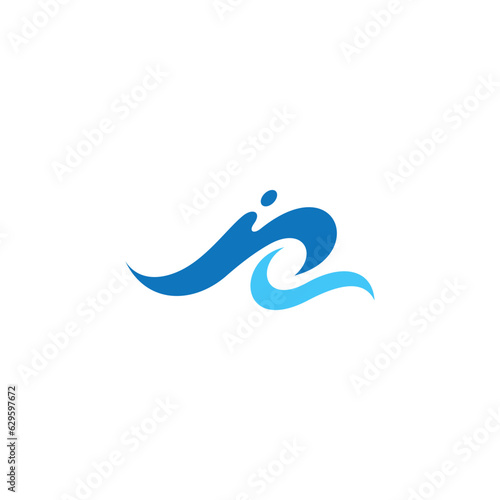 © Dina, Obraz premium Blue waves logo in simple flat design style