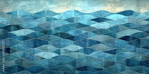 © Saad, Obraz premium Blue waves paper layer overlap on space for text