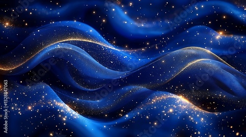 Fototapeta premium Blue waves with golden sparkles in dark background