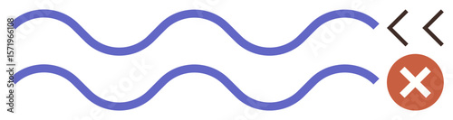 Obraz premium Blue wavy lines suggesting flow beside arrows and a red X denoting...