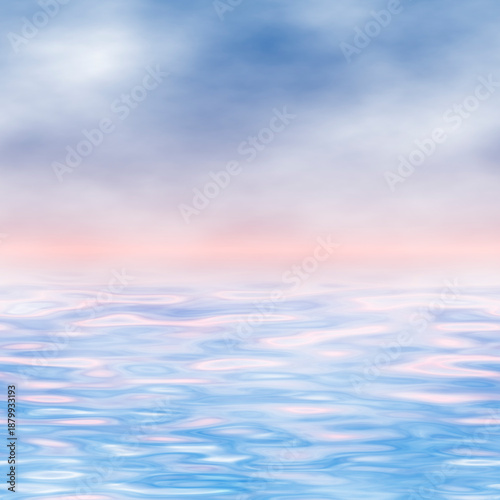 © Akova, Obraz premium Blue wavy ocean, sky with white clouds. Wallpaper texture.