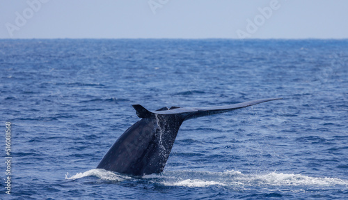 Fototapeta premium Blue Whale, huge tail of a blue whale raised high before a deep dive,...