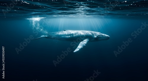© karinanrdyh, Fototapeta premium Blue whale swimming deep underwater
