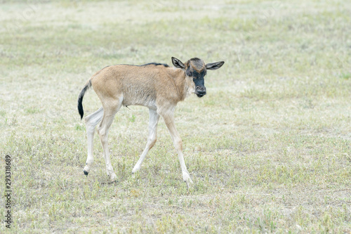 Fototapeta premium Blue Wildebeest (Connochaetes taurinus) newborn calf, Ngorongoro crater national park, Tanzania.