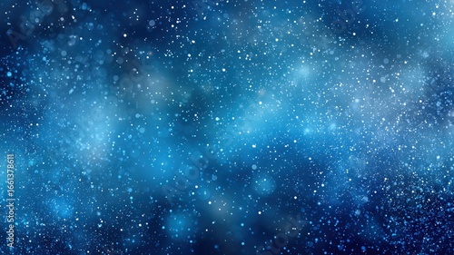 Fototapeta premium Blue winter background with snowflakes and glowing light bokeh.