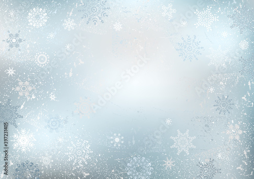 Fototapeta premium Blue winter background with snowflakes. Christmas background.