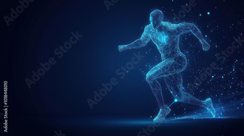 Fototapeta premium Blue wireframe hologram of athlete running for sport technology and futuristic digital elements.