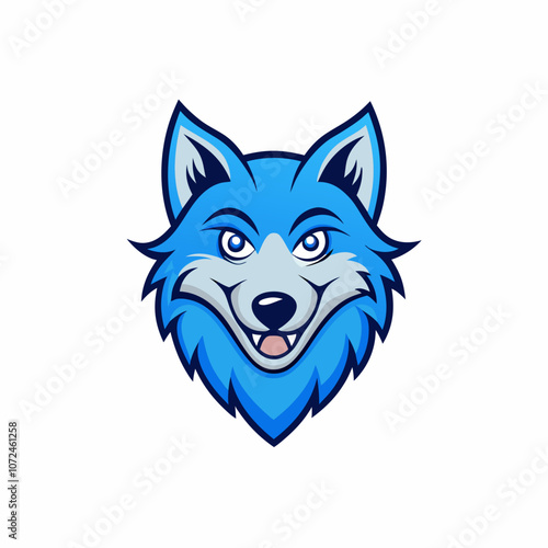 © Chayon Sarker, Naklejka premium Blue wolf mascot logo on white background