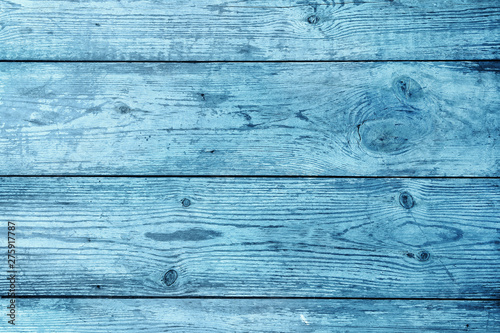 © Tanewpix4289, Obraz premium Blue wood detail background for text.Blank of wooden grunge