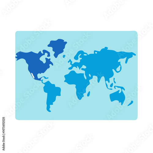 © Sharuzzaman, Fototapeta premium Blue World Map Illustration with California Accent, Global Theme
