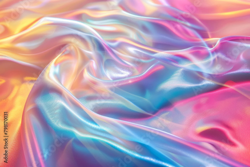 Fototapeta premium Blue, yellow and pink holographic abstract wave, background or pattern,...