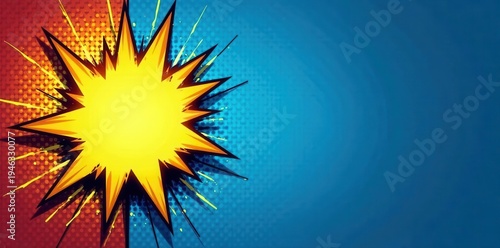 © Busban, Naklejka premium Blue & yellow halftone comic book background with lightning bolt explosion , vibrant, comic book