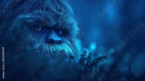 Obraz premium Blue Yeti Peeking Through Forest Ferns