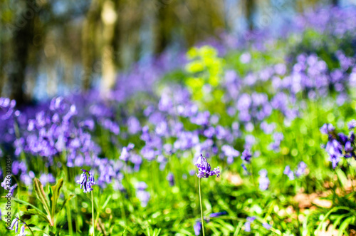 © Jelana M, Fototapeta premium Bluebells blooming in a field in selective focus(
