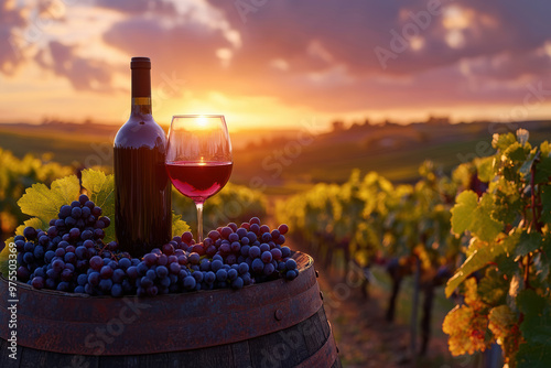 © M.Gierczyk, Fototapeta premium Blueberries and white wine in the vineyard