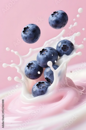Fototapeta premium Blueberries Splashing into Pink Yogurt