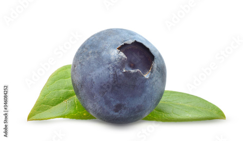 Obraz premium Blueberriy macro with green leaf isolated on white