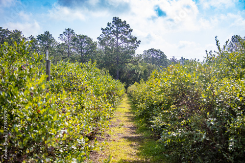 Naklejka premium Blueberry Bushes Farm Rows