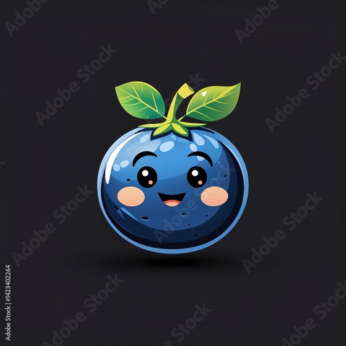 © Things and stuff, Obraz premium blueberry character on plain black background illustration icon logo concept