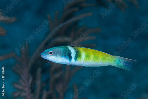 © Griffin, Naklejka premium Bluehead wrasse on coral reef