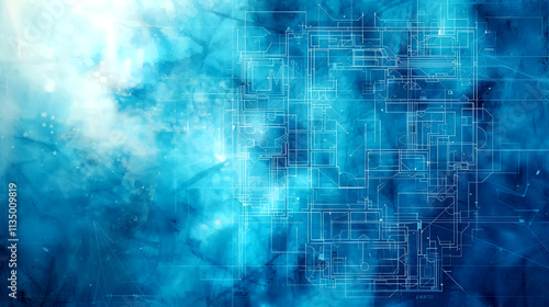 © aviavlad, Obraz premium Blueprint design illuminated by vibrant azure hues and intricate patterns