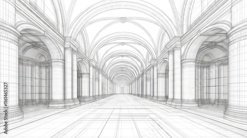 © utaem2022, Naklejka premium Blueprint showing long hallway with columns and arches