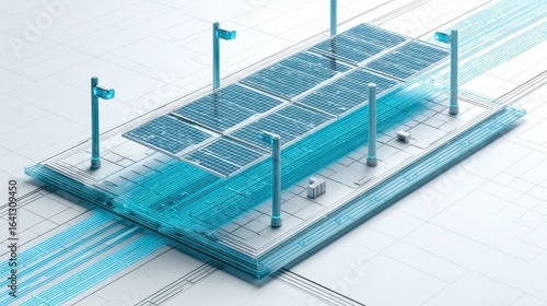Obraz premium Blueprint-style 3D of a solar-powered smart street lighting system with...