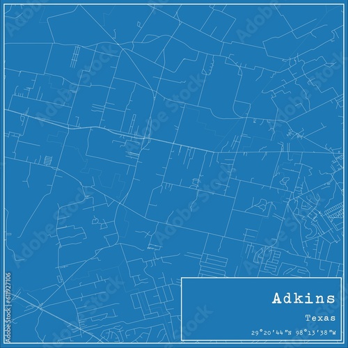 Fototapeta premium Blueprint US city map of Adkins, Texas.