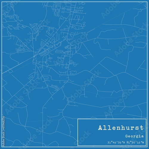 © Rezona, Fototapeta premium Blueprint US city map of Allenhurst, Georgia.