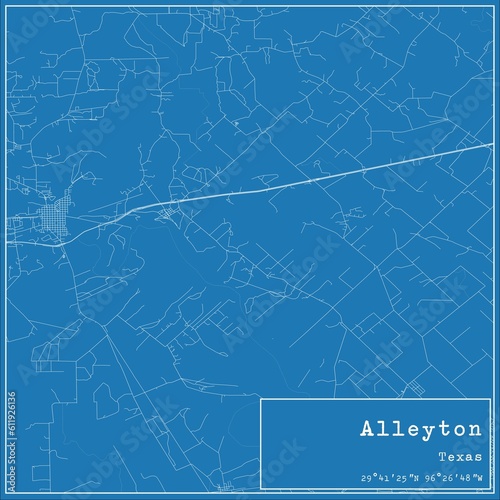© Rezona, Fototapeta premium Blueprint US city map of Alleyton, Texas.