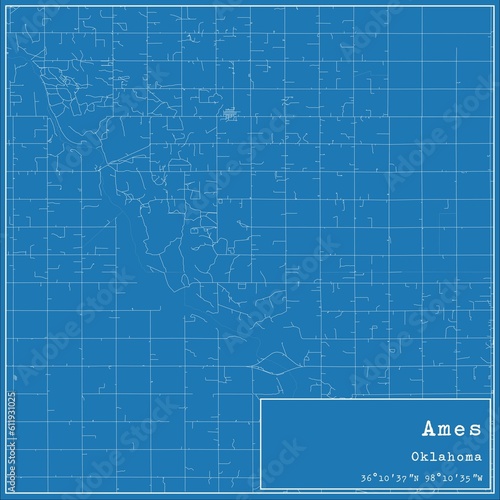 Fototapeta premium Blueprint US city map of Ames, Oklahoma.