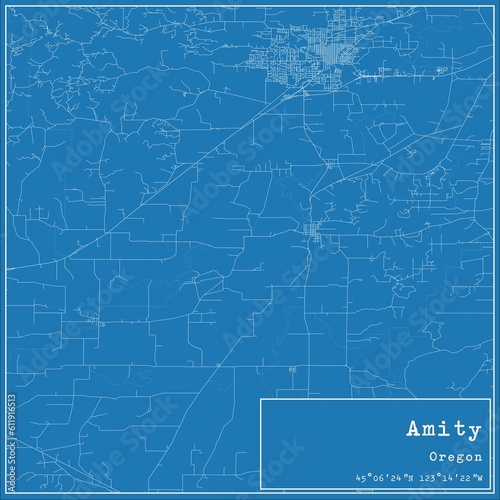 Fototapeta premium Blueprint US city map of Amity, Oregon.