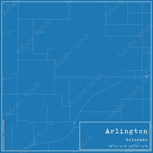 Fototapeta premium Blueprint US city map of Arlington, Colorado.