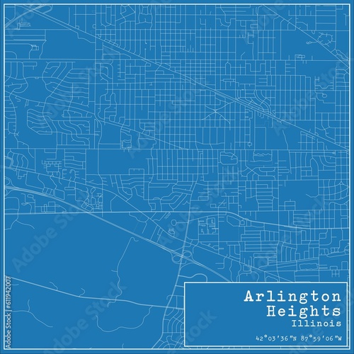 Fototapeta premium Blueprint US city map of Arlington Heights, Illinois.