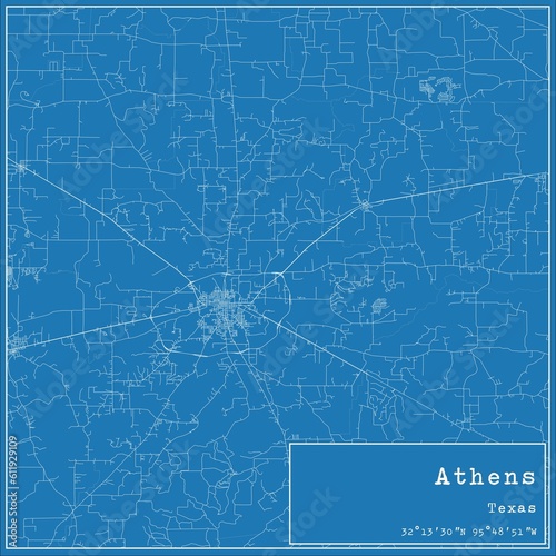 © Rezona, Fototapeta premium Blueprint US city map of Athens, Texas.