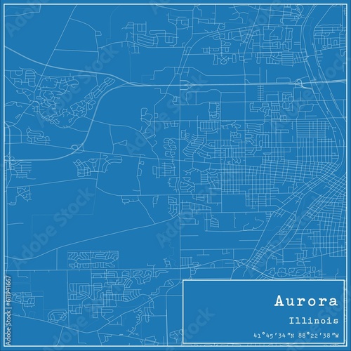 Fototapeta premium Blueprint US city map of Aurora, Illinois.