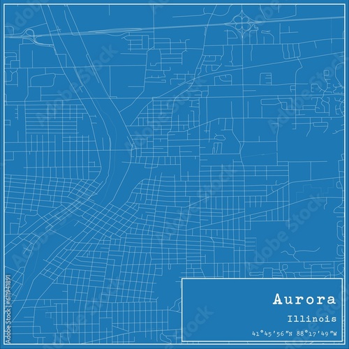 Fototapeta premium Blueprint US city map of Aurora, Illinois.