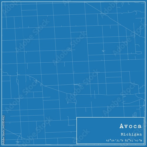 Fototapeta premium Blueprint US city map of Avoca, Michigan.