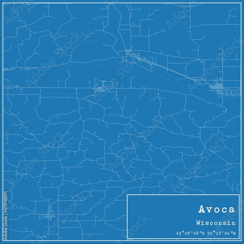 Fototapeta premium Blueprint US city map of Avoca, Wisconsin.