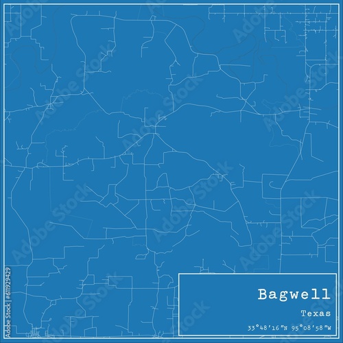 Fototapeta premium Blueprint US city map of Bagwell, Texas.