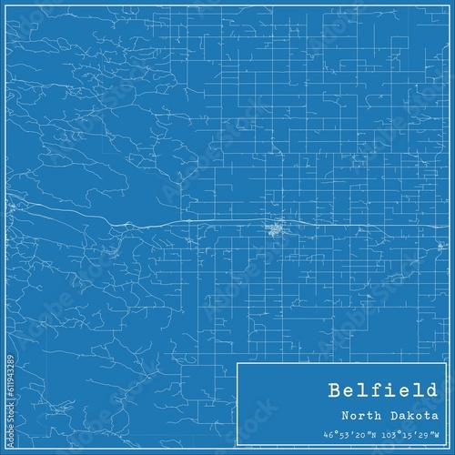 Fototapeta premium Blueprint US city map of Belfield, North Dakota.